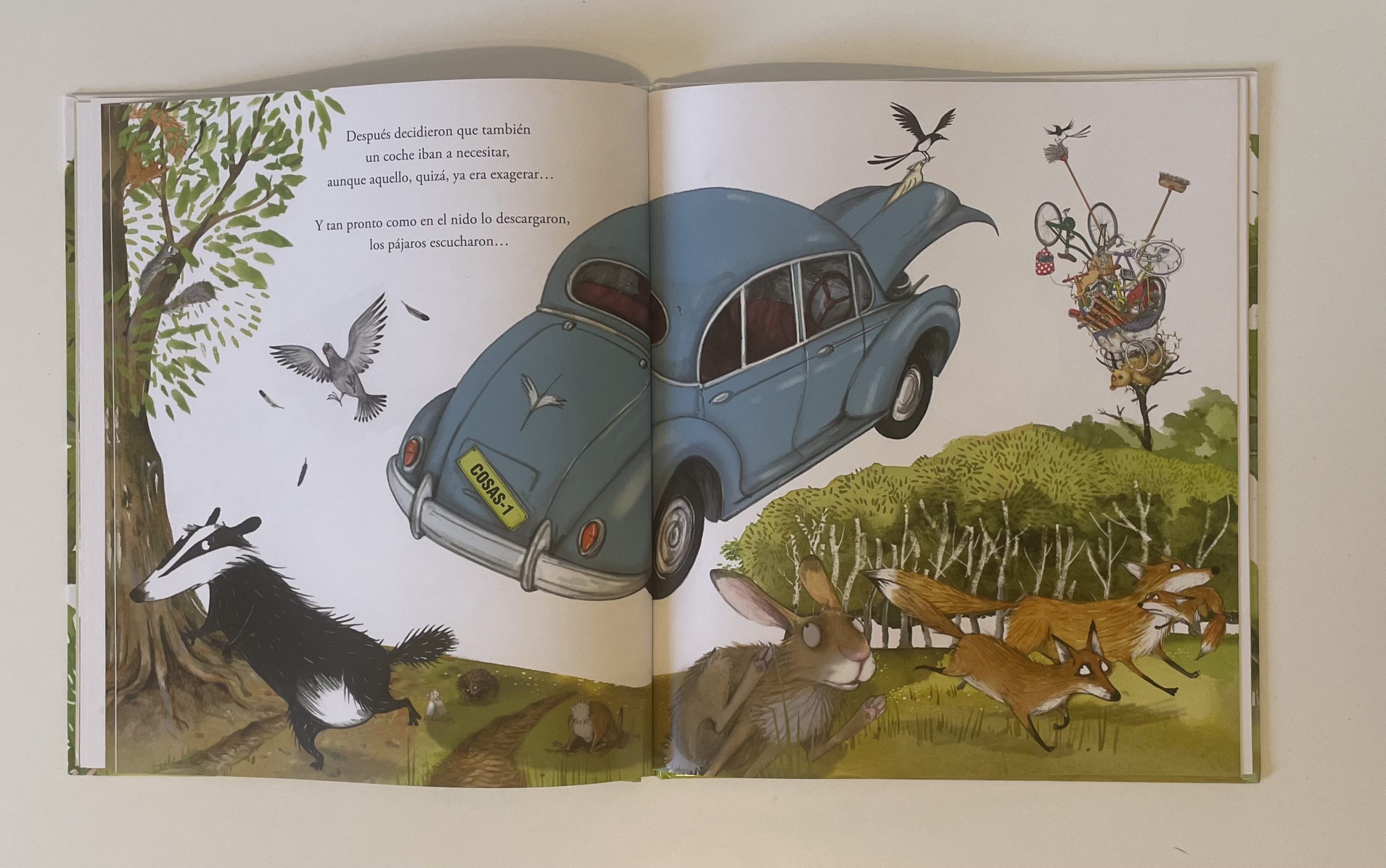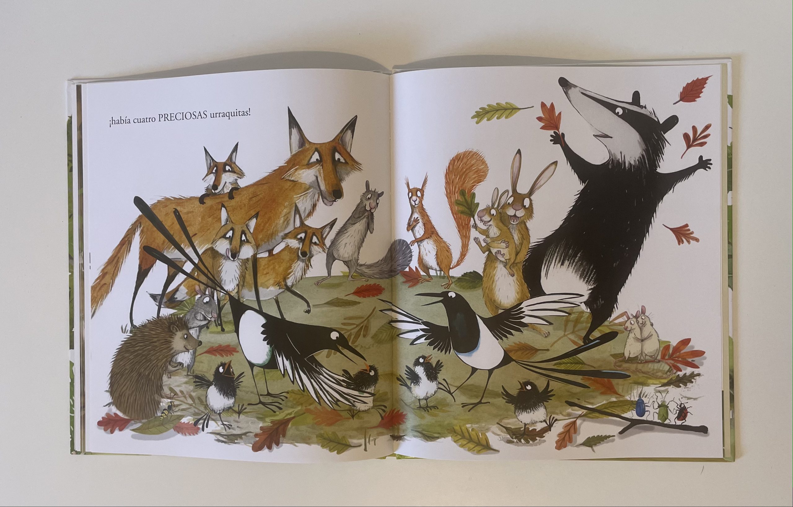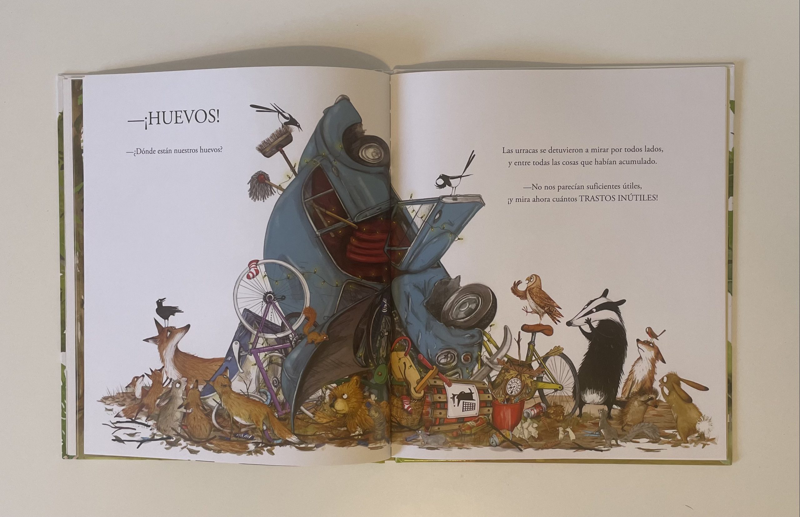 Ash y Meg son dos urracas que acaban de construir el nido en el que vivirán con los cuatro pollitos que esperan. Mientras incuban los huevos, se preguntan si ya tienen todo lo que van a necesitar sus urraquitas cuando nazcan, pero no. ¡Todo es poco para sus pequeñines! Así que empiezan a llenar el nido con cosas y más cosas y más cosas, hasta que…. mejor no les contaré el final.