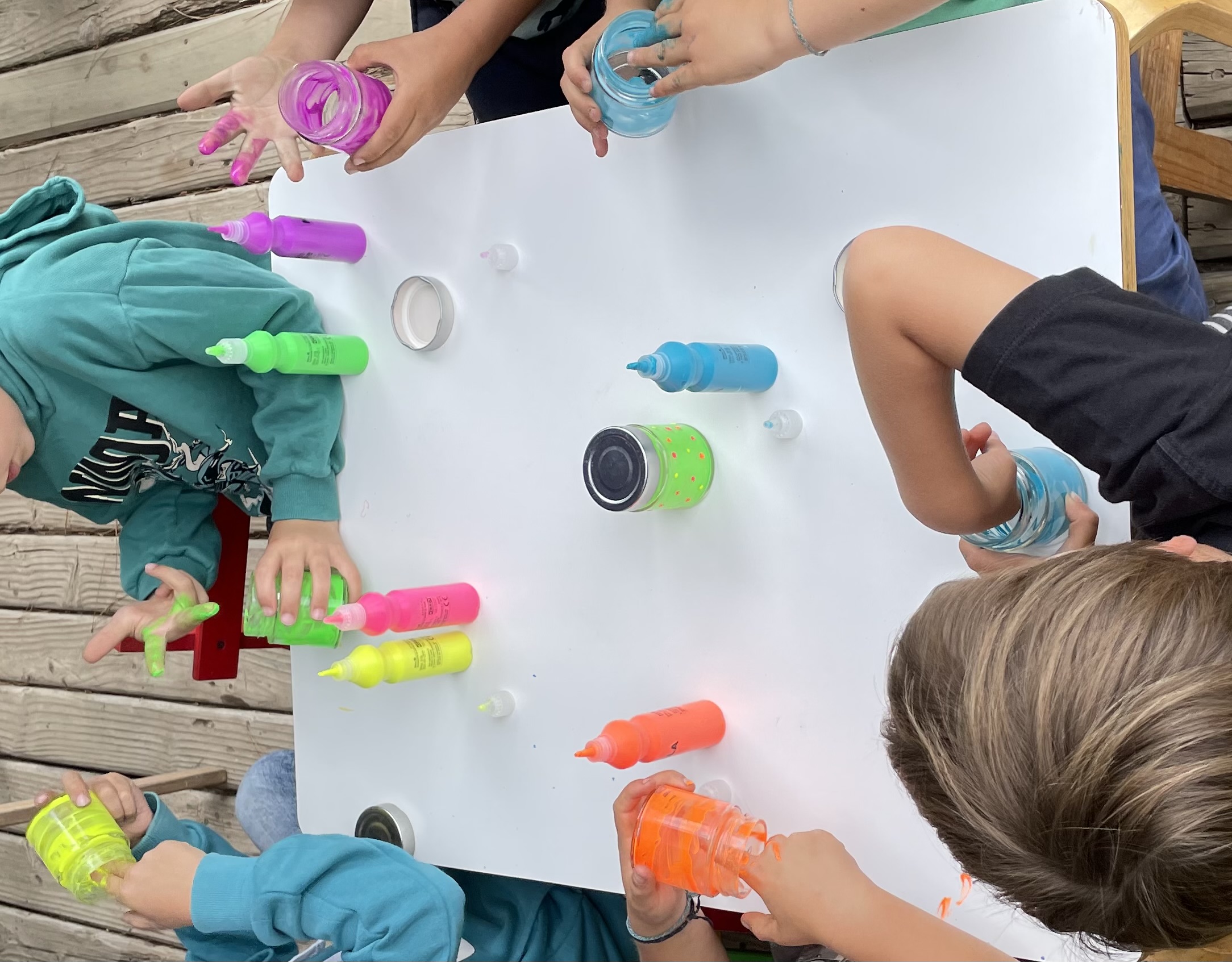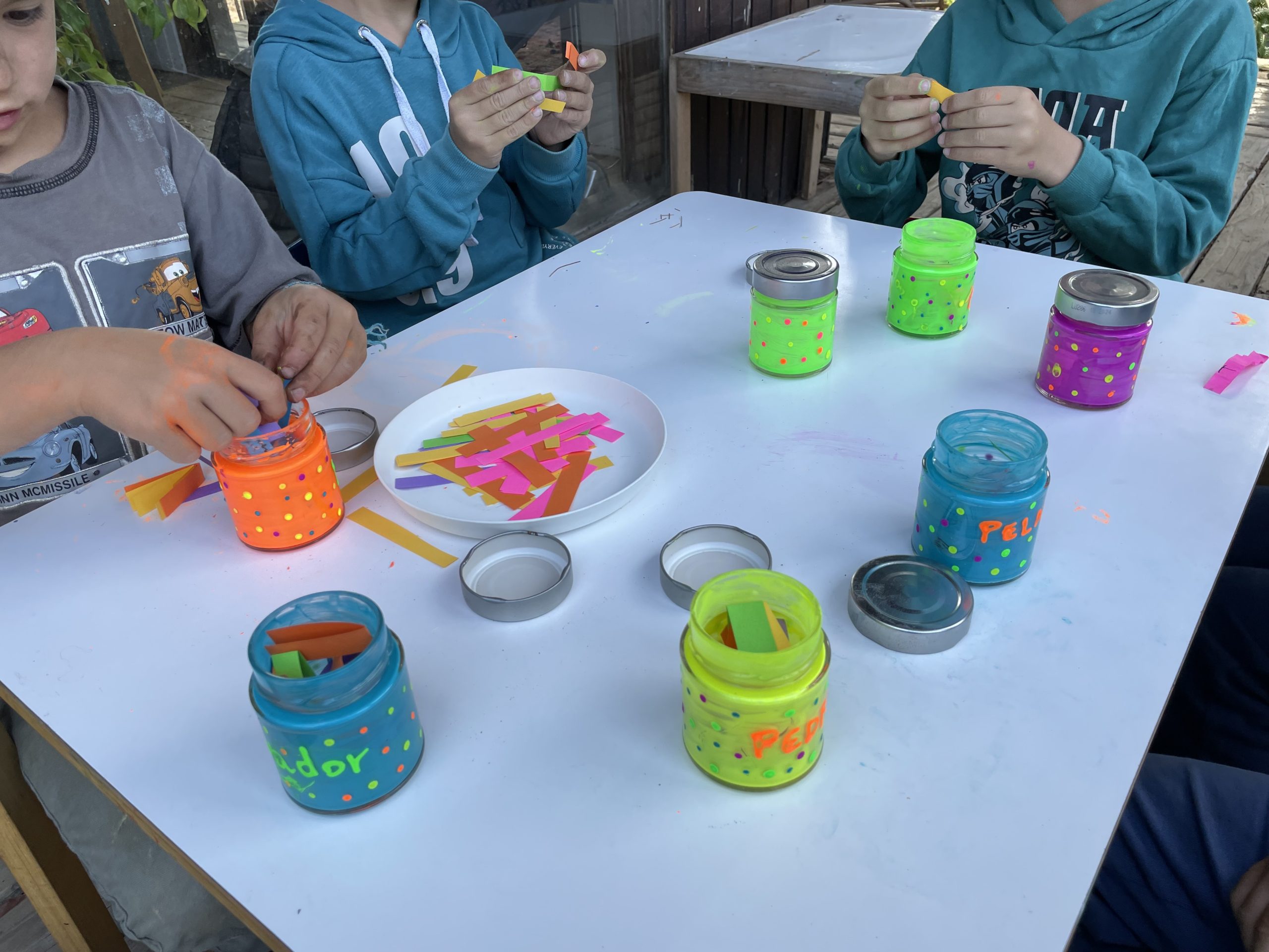 En este Taller comenzamos pintando el frasco, porque necesitábamos tiempo para que se secara.