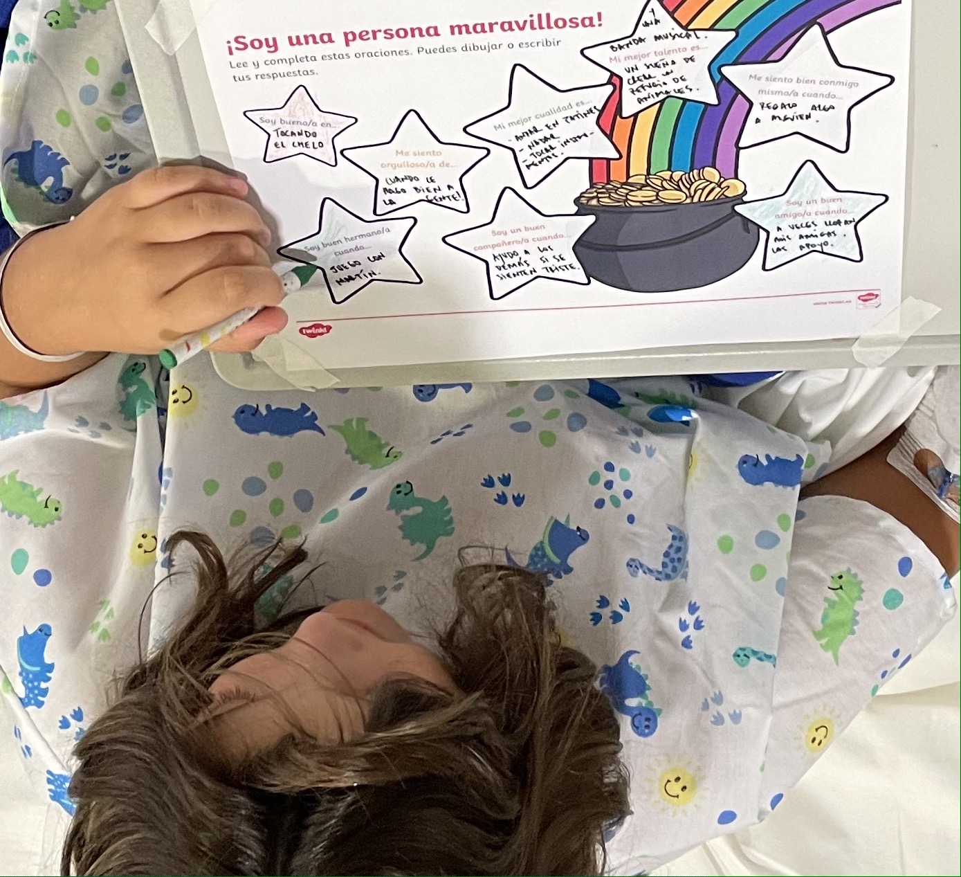 Sin embargo igual, desde los 6 años puede resultar y es bien bonita que la completen junto con su mamá, papá o adulto cuidador. Luego de escribir pintan las estrellas y sirve para distraerse, reforzar su autoestima y quererse más a sí mismos.