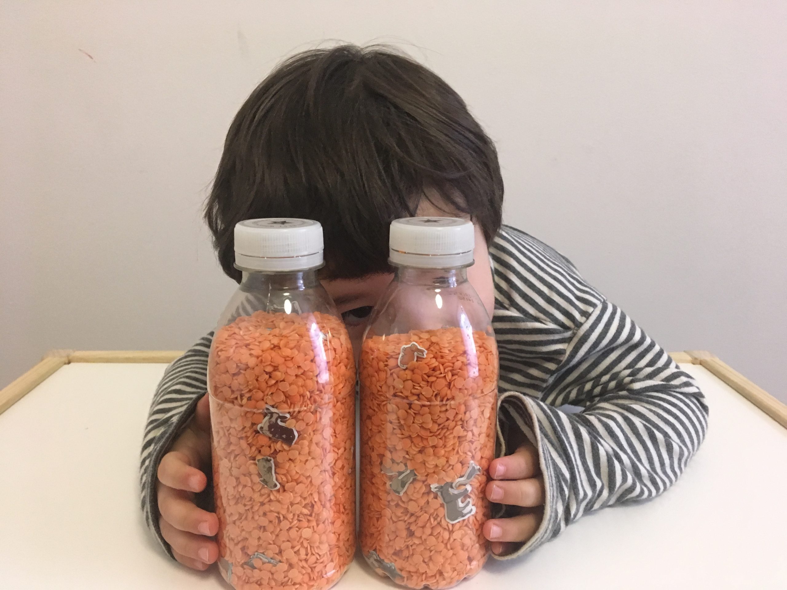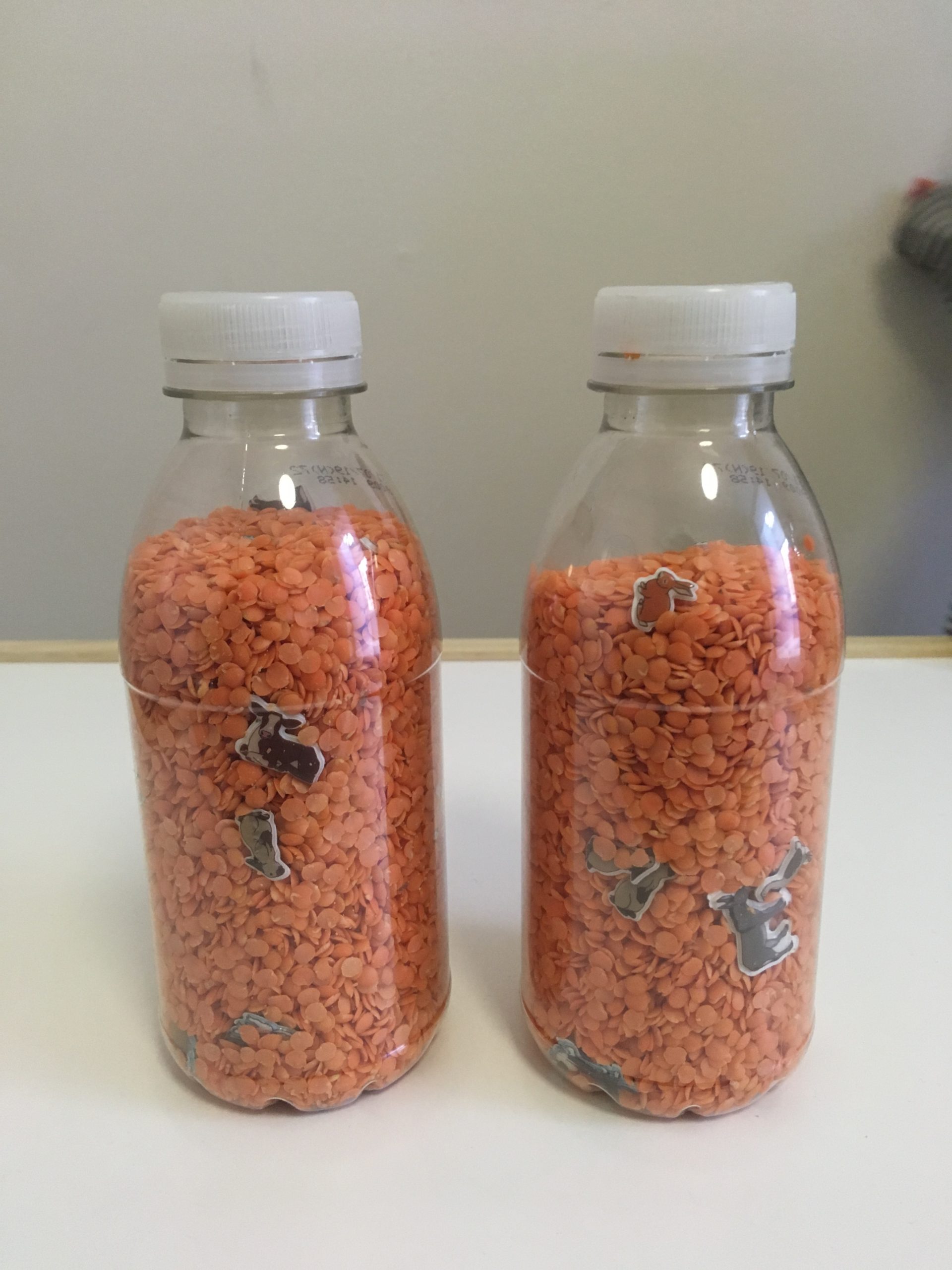 - Lentejas o arroz o garbanzos o cuscus o mostacillas de colores (lo que tengan y prefieran).